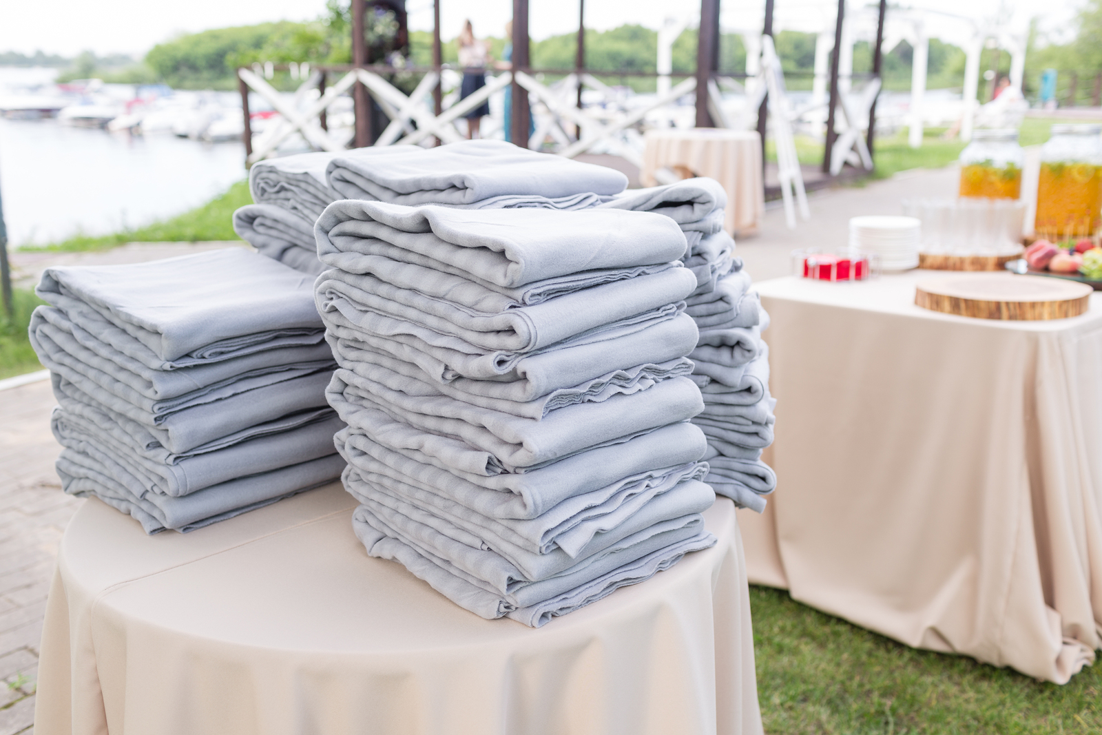 Gray Plaids For Bad Weather. Summer Time. Outdoor. Warm Blankets