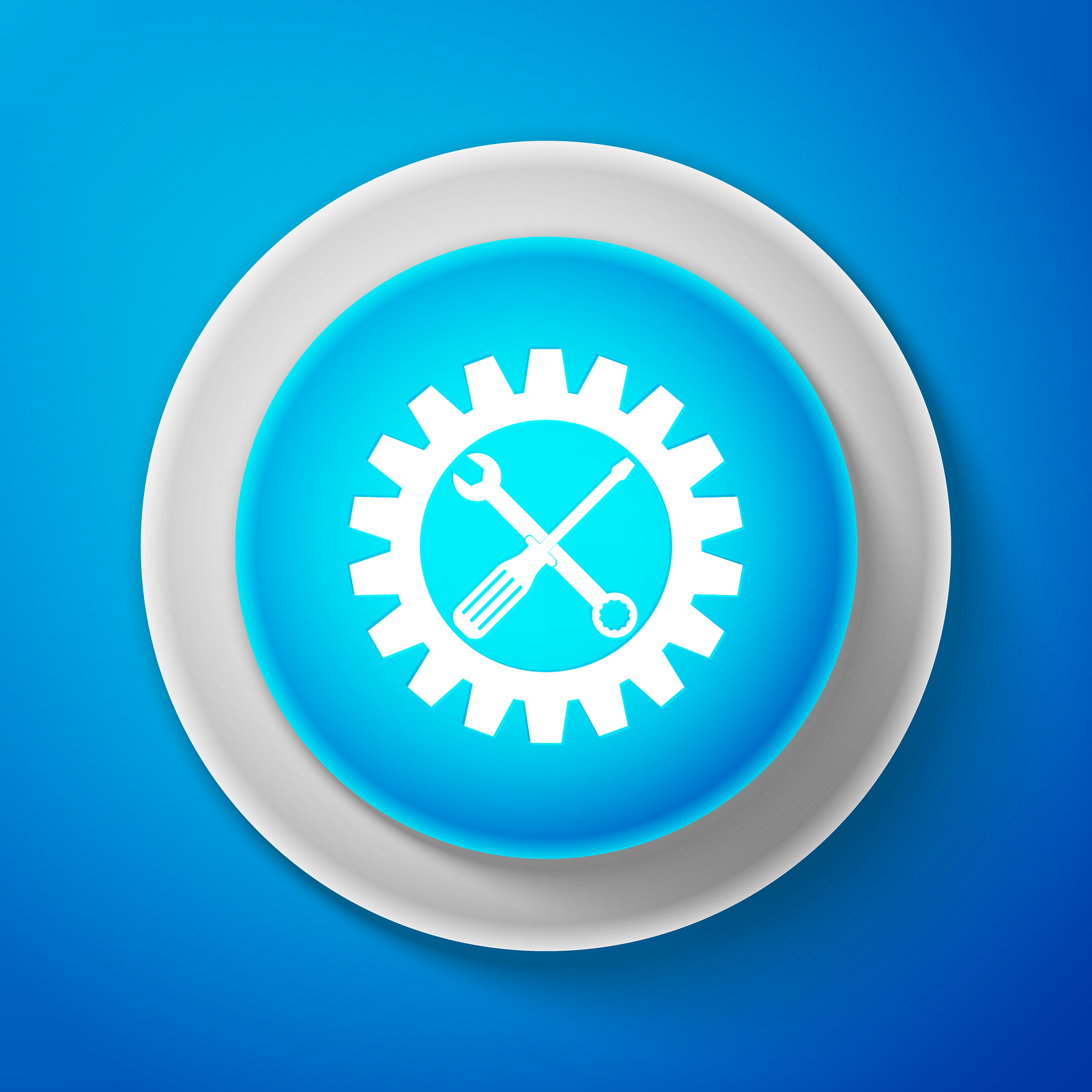 White Maintenance Symbol – Screwdriver, Spanner And Cogwheel Ico